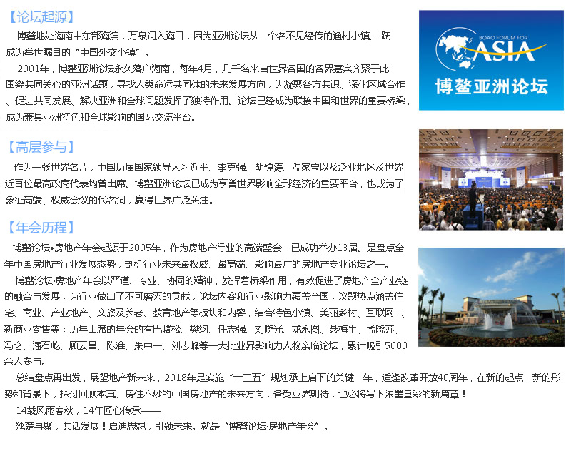 博鳌论坛·2018(第14届)房地产年会会议背景