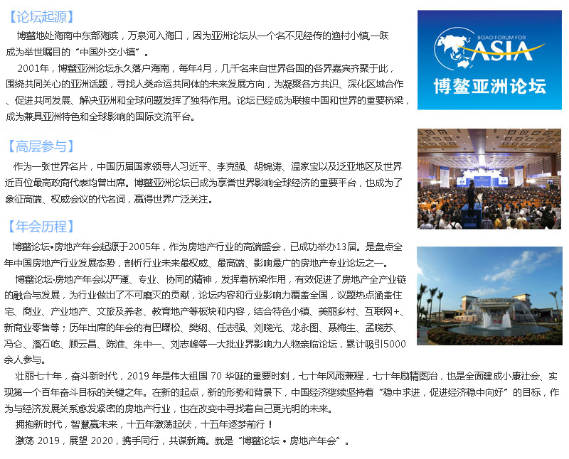 博鳌论坛·2019(第15届)房地产年会会议背景